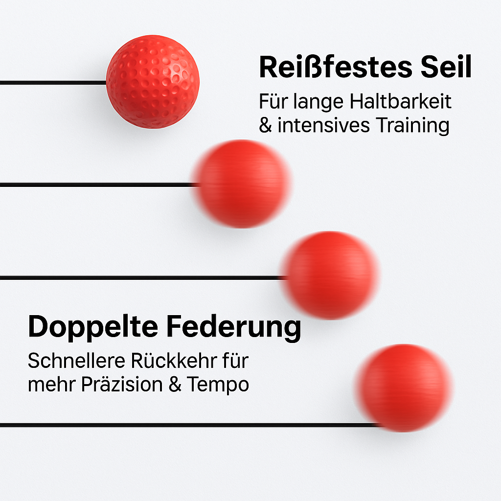 Im Paket erhältst du alles, was du für den direkten Start brauchst: den roten Speedo Reflex Ball mit reißfestem Seil, ein verstellbares Stirnband in Carbon-Schwarz sowie eine praktische Aufbewahrungstasche und eine kurze Anleitung für den schnellen Einstieg. So kannst du sofort loslegen – ohne zusätzliche Anschaffungen oder komplierte Vorbereitung.