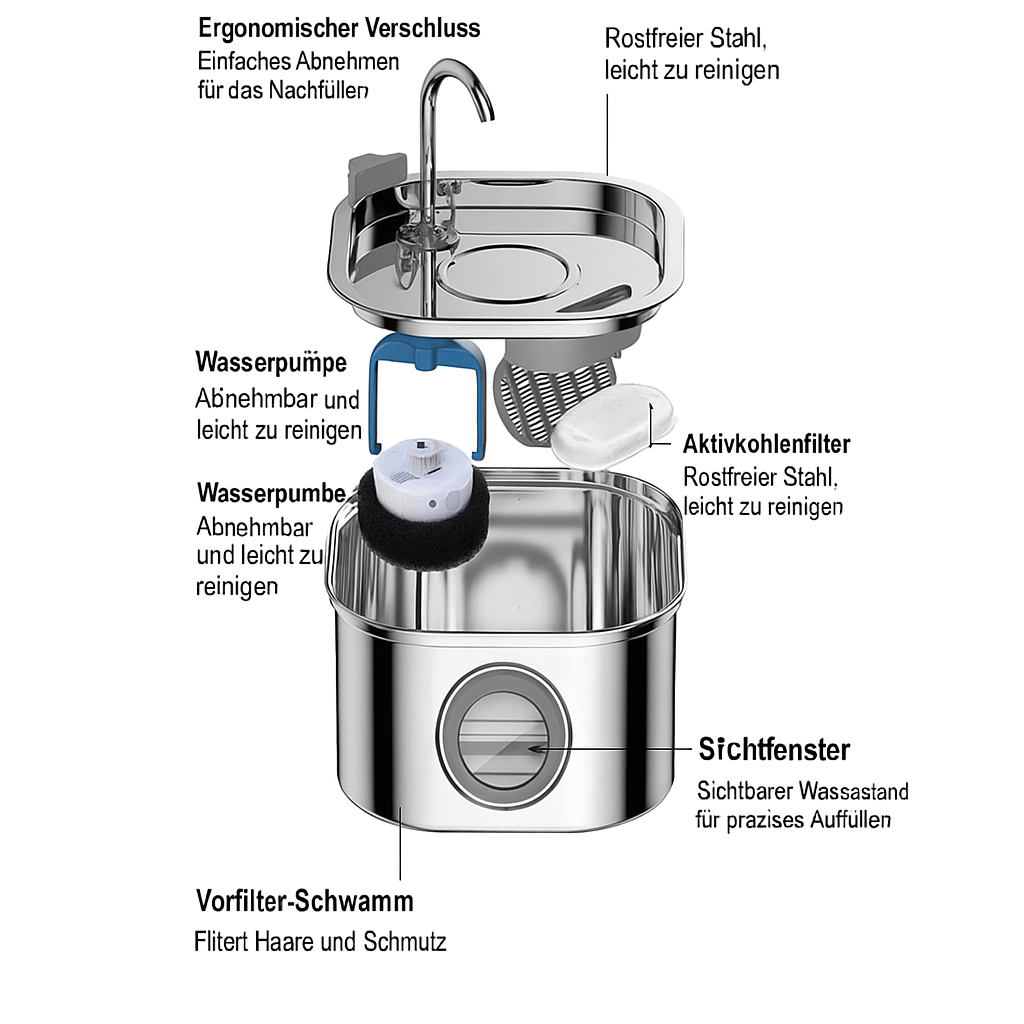 Viele Haustiere leiden still: trübes Wasser, alte Näpfe und ungesunde Ernährung führen schnell zu Müdigkeit, Appetitlosigkeit und Krankheiten.Ohne sauberes Trinkwasser sammeln sich Bakterien, Keime und Giftstoffe, die den Organismus schwächen – oft unbemerkt.
