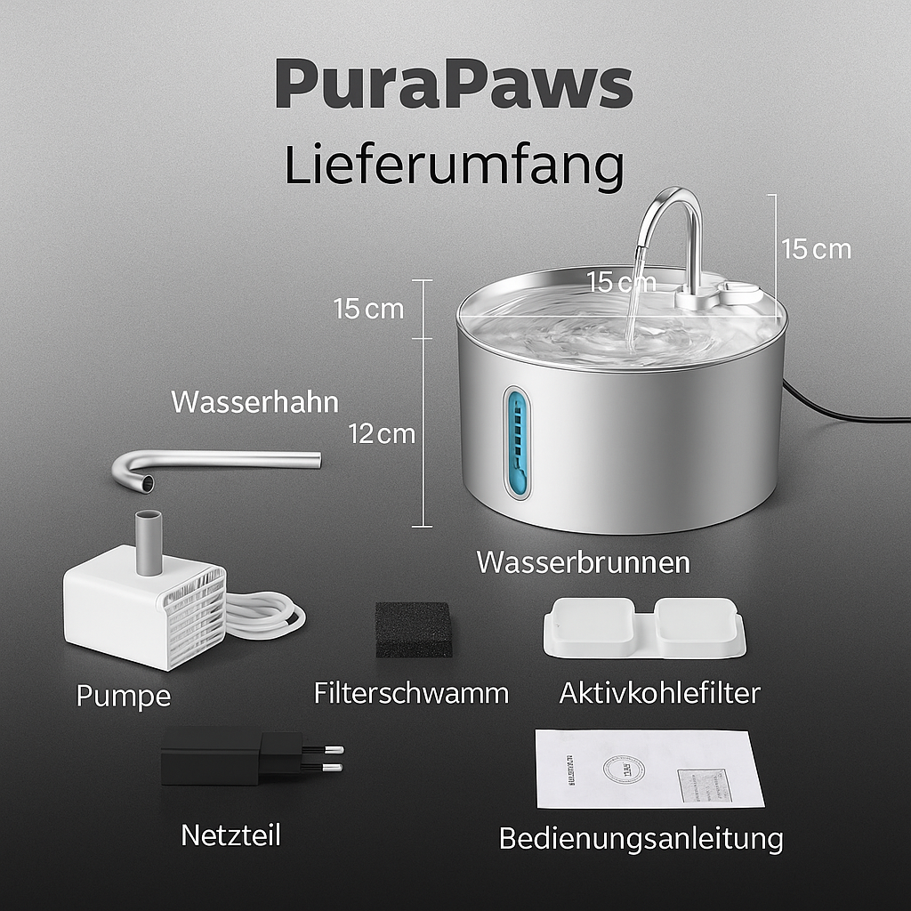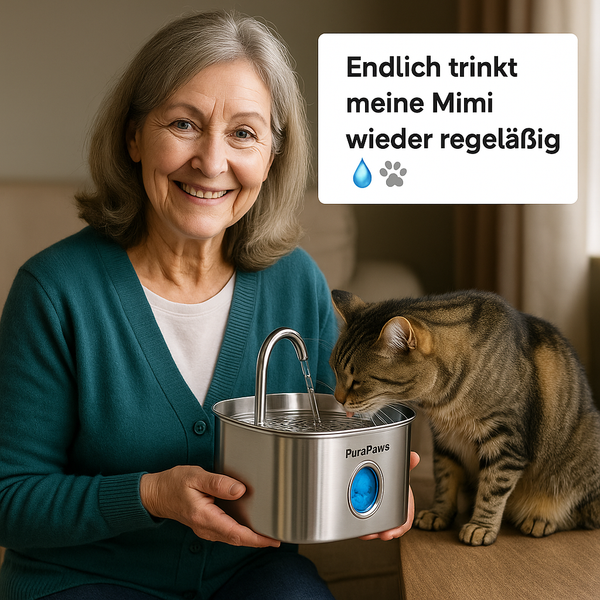 Altes, abgestandenes Wasser im Napf sammelt Bakterien und Schmutz, die zu Nierenproblemen, Appetitlosigkeit und Müdigkeit führen können.Vor allem Katzen meiden stilles Wasser – sie spüren, wenn es nicht frisch ist.Mit PuraPaws bekommt dein Tier endlich laufend gefiltertes, sauberes Wasser, das zum Trinken anregt – und so Gesundheit und Energie fördert. 🐾